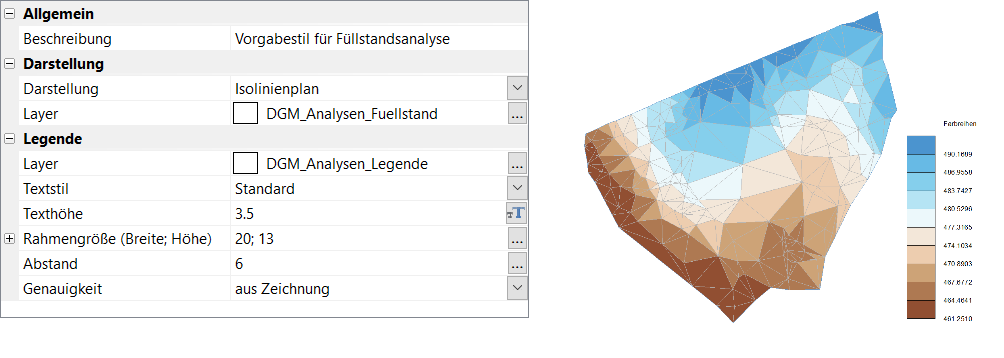 Die Darstellung kann als Keine, Isolinienplan oder Isolinienplan mit Flächenfüllung vorgewählt werden.
