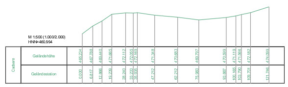 Jeder Geländeschnitt wird automatisch bezeichnet. Diese Bezeichnung kann benutzerdefiniert geändert werden. Die Darstellung des Schnittlayouts wird über den Darstellungsstil definiert.