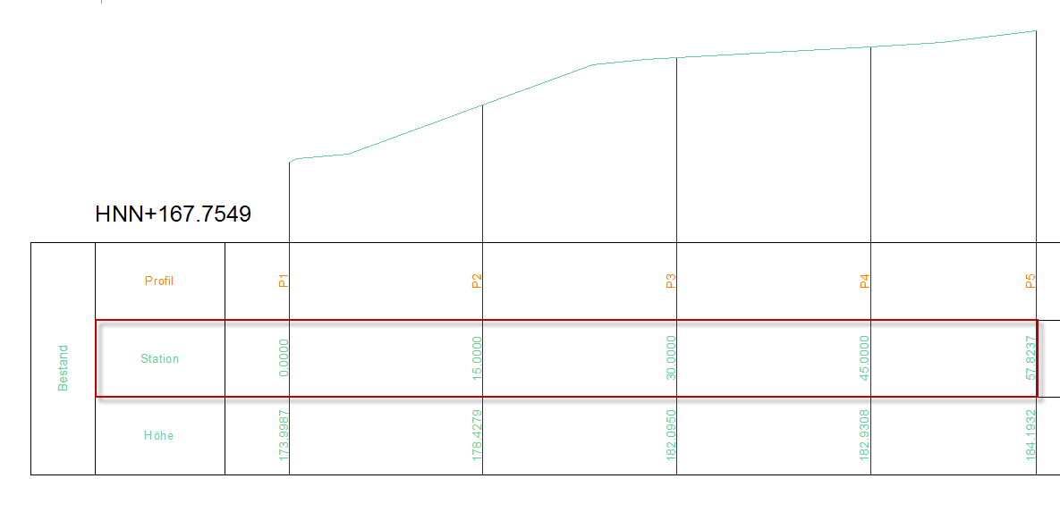 - Abstand von vorheriger Tabellenzeile – Abstandswert in Zeichnungseinheiten, welcher über die Tabellenzeile Geländehöhe gesetzt wird.