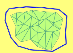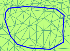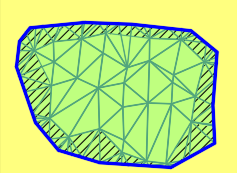 - Eine weiche Grenzlinie ist gleichzeitig eine Bruchkante und bewirkt, dass die Dreiecke immer vollständig an die Grenzlinie heran trianguliert werden. Um dies zu erreichen, werden an allen Stützpunkten der Grenzlinie, die nicht identisch mit vorhandenen DGM-Punkten sind, sowie auf allen Schnittpunkten mit vorhandenen Dreiecksseiten, neue DGM-Punkte erstellt.