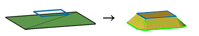 Neben einem Neigungswinkel wird die gewünschte Böschungshöhe (H) festgelegt. Hierbei entsteht ein Kunstkörper, welcher v. a. für weitere Konstruktionen verwendet werden kann. Das Verfahren ist immer dann praktisch, wenn die erzeugte Böschungskante parallel und mit gleicher Höhendifferenz verlaufen soll. |