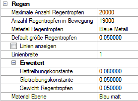 Für diese Analyse gelten einzelne Parameter als Grundlage für die Berechnung. Diese Parameter werden innerhalb der Optionen des Viewers, im Menüpunkt Regen, definiert. |
