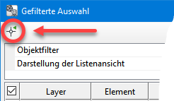Für die Erstellung einer gefilterten Auswahl wählen Sie zunächst die Zeichnungselemente innerhalb des gewünschten Bearbeitungsbereiches aus. Für diese Auswahl stehen die Standard-Auswahlmethoden zur Verfügung. Die Auswahl lässt sich mit einem Objektfilter zusätzlich steuern, womit Sie die Möglichkeit haben, aus einer beliebigen Anzahl von Zeichnungselementen die gewünschten Elementtypen automatisch herauszufiltern. |