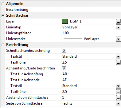 - Layer – Legt den Vorgabelayer für die Schnittachse fest.