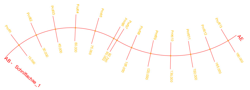 Eine Stationierung, auch Querachse genannt, wird für die Markierung von ausgewählten Stationspunkten entlang der Schnittachse verwendet. Im Regelfall erfolgt die Darstellung in einem vorgegebenen Stationsintervall. Voraussetzung für die Erstellung einer Stationierung ist eine zuvor erstellte Schnittachse. Stationierungen bilden die Grundlage für Längs- und Querprofile.