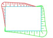 Bevor die Böschungskonstruktion ausgeführt wird, lässt sich jederzeit eine Vorschau erstellen. Die Vorschau berücksichtigt die jeweils aktuellen Einstellungen zum Richtungssinn, den Konstruktionsparametern und zur Böschungsschraffur. Sie ist damit ein wichtiger Indikator für alle Einstellungen und erlaubt die Variation der Parameter im laufenden Betrieb.