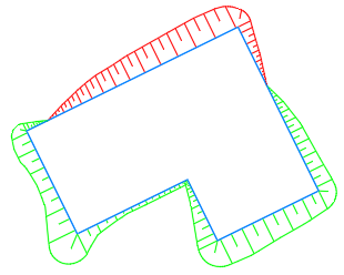 Die Böschungslinien werden generell nach Auftrag und Abtrag und unabhängig von Layereinstellungen in den Farben Grün und Rot dargestellt.