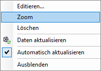 KonstruktionenFlächenBöschungskonstruktion erstellen Zoom auf Böschungskonstruktion Durch diesen Befehl aus dem Kontextmenü der Böschungskonstruktion wird in der Zeichnung auf die Böschungskonstruktion gezoomt, z. B. um diese anschließend zu editieren oder komfortabel aufzufinden.