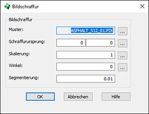 Bei der Änderung des Musters wird der Standard-Dateidialog geöffnet. Hierbei können nicht nur Bildschraffuren, sondern alle vom Schraffurmanager unterstützten Schraffurtypen gewählt werden. Die Wahl eines Musters mit einem anderen Schraffurtyp bewirkt automatisch den Wechsel zum dafür zuständigen Parameterdialog.