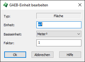 Durch Betätigung der Schaltfläche Neu oder Ändern können Sie neue Einheiten definieren oder vorhandene editieren. Geben Sie zunächst die Bezeichnung in das Feld Einheit ein und wählen Sie anschließend eine Basiseinheit, aus der die neue Einheit abgeleitet wird. Abschließend ist ein Faktor anzugeben, der sich auf die gewählte Basiseinheit bezieht. Bei der Einheit km2 ist dies 1000000 (1000 m x 1000 m = 1000000 m2). |