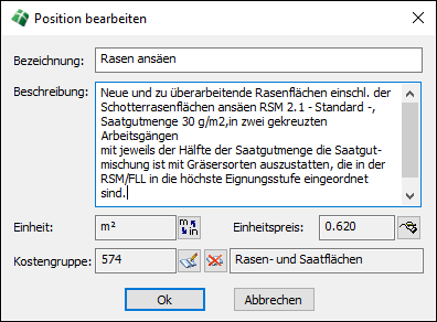 LV bearbeiten Positionen bearbeiten Das nachträgliche Bearbeiten einer Position bietet die Möglichkeit Kurz- und Langtext, die Einheit sowie den Einheitspreis zu editieren. Darüber hinaus besteht die Möglichkeit, die Kostengruppe zu editieren bzw. überhaupt erst zuzuordnen.
