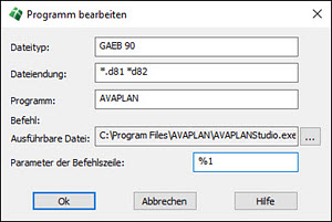 Sie müssen abschließend noch einen Parameter eingeben, mit dem das Programm gestartet wird. Z. Zt. wird der Parameter %1 unterstützt, welcher das Programm mit der auszugebenden Datei öffnet.
