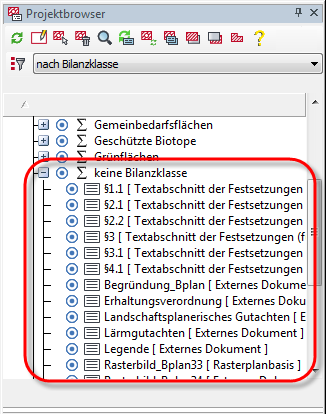 Zu welcher Bilanzklasse ein Planzeichen gehört, ist in den Informationen zum Planzeichen im unteren Dialogbereich des Projektbrowsers ersichtlich.