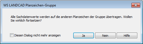 Durch die Aktivierung der Option Automatisch gruppieren im Dialog Shape-Planzeichen erstellen werden mehrere Objekte inhaltlich zusammengefasst. Dabei können die Sachdaten, die bei der ersten Fläche eingegeben wurden, auf die anderen Mitglieder der Gruppe übertragen werden. Wenn Sie die empfohlene Option Ja wählen, sind die Sachdatenwerte somit identisch! Wählen Sie Nein, wenn Sie dies nicht wollen.