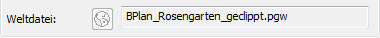 Bei der Ausgabe in ein Pixeldateiformat wird in der Zeile Weltdatei der Name der Georeferenzierungsdatei, die i. d. R. bis auf die Dateiendung mit dem Namen der Bilddatei identisch ist, angezeigt. Die Georeferenzierungsdatei wird in dem gleichen Ordner wie das Pixelbild abgelegt. Die Schaltfläche ist ausgegraut, um anzuzeigen, dass es keine weitere Einstellung mehr gibt.