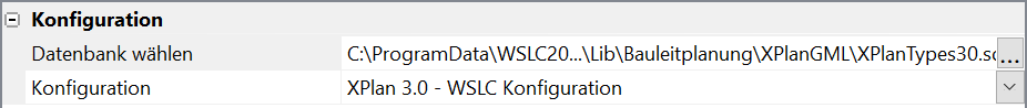 - Konfiguration – Hier ist die Konfiguration in den Bibliotheken zu wählen, welche für die Verarbeitung des XPlanungs-Standards verwendet werden soll. Die möglichen Konfigurationen stehen in einer Klappliste zur Auswahl.