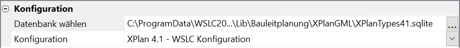 - Konfiguration – Hier ist die Konfiguration in den Bibliotheken zu wählen, welche für die Verarbeitung des XPlanungs-Standards verwendet werden soll. Die möglichen Konfigurationen stehen in einer Klappliste zur Auswahl.