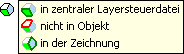Unabhängig vom Ansichtsmodus wird jedem Layereintrag ein Zustands-Icon vorangestellt, welches die jeweiligen Layerrelationen symbolisiert. Die Bedeutung wird in einem grafischen Tooltipp erläutert, sobald die Maus auf das Zustands-Icon zeigt. Zeichnungslayer lassen sich per Konfigurationsdialog zur Verdeutlichung zusätzlich hellblau unterlegen.
