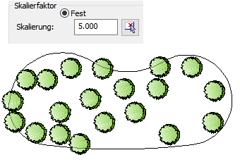 Der Skalierfaktor kann ebenfalls für alle Details fest vorgegeben oder innerhalb einer Varianz zufällig vergeben werden. Der Skalierfaktor ist unabhängig von der Art der Verteilung und kann daher mit jeder Variante kombiniert werden.