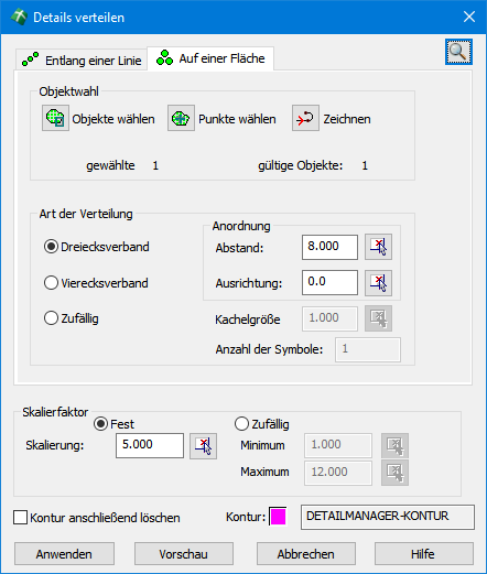 Die Betätigung der Schaltfläche Vorschau fügt die Details zunächst nur temporär ein, um noch eventuelle Änderungen der Parameter vornehmen zu können, während die Schaltfläche Anwenden die Details fest einfügt und anschließend zum Hauptdialog des Detailmanagers zurückkehrt.