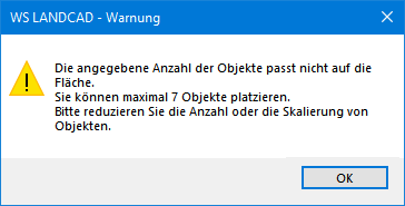 Die zufällige Verteilung beschränkt die Anzahl der maximal verteilbaren Details je nach Größe und Form des Objekts sowie der festgelegten Parameter. Daher erscheint eine Warnmeldung, wenn die von Ihnen festgelegte Anzahl der Symbole nicht auf die Fläche passt. |