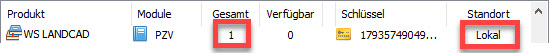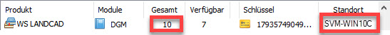 - Bei Netzlizenzen ist der Standort i. d. R. nicht lokal, sondern durch einen Servernamen erkennbar. Die Anzahl der jeweiligen Lizenzen ist i. d. R. größer als Eins (1).