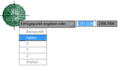 Ist im Optionsfenster bei Optionen verwenden ein Nein ausgewählt, entspricht das Einfügen eines Symbols weitestgehend dem (Mehrfach-) Einfügebefehl von AutoCAD.