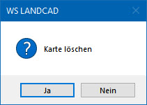 Eine Karte des aktuellen Layouts lässt sich durch Auswahl des Befehls Objekt → Karte → Löschen bzw. über das Icon Karte löschen vollständig entfernen. Sie werden nach dem Aufruf des Befehls zu einer Objektwahl aufgefordert und können nun ein beliebiges Objekt der Karte (z. B. Rahmen, Gitterkreuz...) wählen. Nach einer Sicherheitsabfrage werden alle zur Karte gehörenden Objekte aus dem Layout entfernt. Die Gebietsbegrenzung im Modellbereich bleibt bestehen, da sie kein Element der Karte selbst darstellt. |