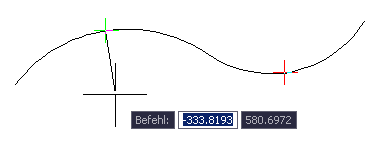 Sie haben jedoch die Möglichkeit, die Lage des Textes noch vor der Texterzeugung zu beeinflussen, indem Sie die Schaltfläche Verschieben aktivieren. In diesem Fall wird je ein grünes und ein rotes Kreuz eingeblendet, welche sich entlang der Führungslinie verschieben lassen und den Anfang bzw. das Ende des Textes markieren. |