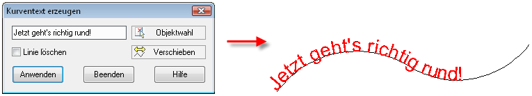 Diese Funktion erlaubt es, sowohl Text entlang von beliebigen Polylinien zu zeichnen als auch diesen Kurventext jederzeit zu editieren.