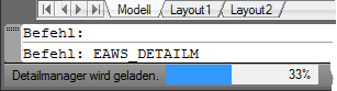 Grafische Manager Laden eines Managers Beim ersten Aufruf eines Managers muss dieser zunächst geladen werden, was durch eine Fortschrittsanzeige in der Statuszeile von AutoCAD angezeigt wird.