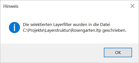 Nach der Bestätigung mit OK erscheint die Aufforderung zum Speichern der Layer-Struktur-Datei, gefolgt von einer entsprechenden Meldung. |