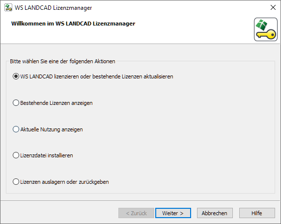 Der WS LANDCAD-Lizenzmanager umfasst den gesamten Bereich der Lizenzverwaltung.
