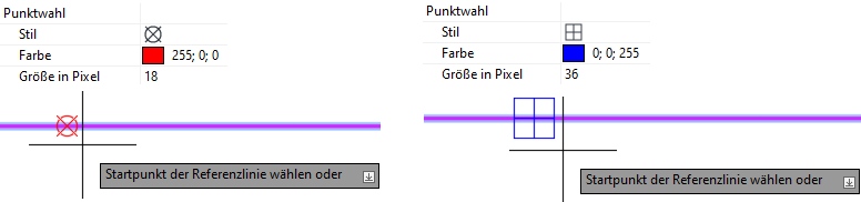 - Startpunkt – Über Stil, Farbe und Größe in Pixel lässt sich die temporäre Darstellung des gewählten Startpunktes steuern.