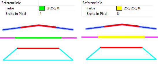 - Referenzlinie – Der gewählte Bereich der Referenzlinie wird temporär hervorgehoben. Die Darstellung kann über Farbe und Breite in Pixel verändert werden.
