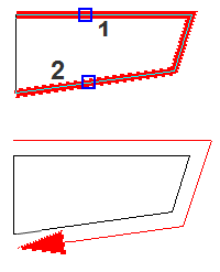 Eine abgebrochene Abstandslinie lässt sich durch diese Option wieder aufnehmen. Dazu ist das letzte Segment zu wählen. Beim Schließen werden eventuelle Überstände automatisch bereinigt. Die Funktion erkennt auch, wenn das fortzusetzende Segment doppelte Stützpunkte aufweist und kann diese nach einer Anfrage automatisch entfernen. Doppelte Stützpunkte können zu unerwünschten Resultaten in der Abstandslinie führen. |