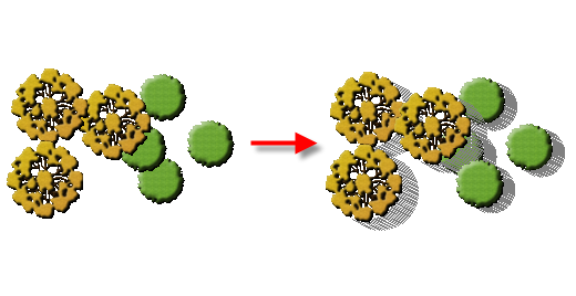 Dieser Befehl fügt ein Schattensymbol an gewählte Pflanzensymbole an. Die mit WS LANDCAD mitgelieferten Blöcke finden Sie in der Symbolbibliothek \WSSYM im Unterverzeichnis \SCHATTEN.