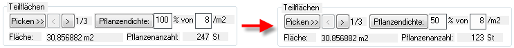 Zu diesem Zweck, kann der Füllungsgrad abgeändert werden, wodurch sich auch die resultierende Stückzahl ändert. Mehrfachbepflanzungen mit unterschiedlichen Füllungsgraden können auch in einem Pflanzenschema verwendet werden.