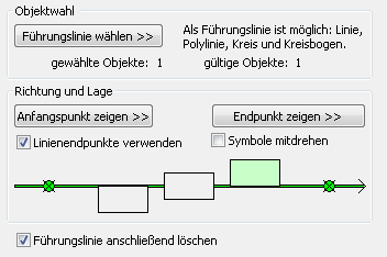 Nach der Wahl der Führungslinie können Sie den Anfangs- und Endpunkt durch Betätigung der entsprechenden Schaltflächen wählen oder das Schema an der gesamten Führungslinie anwenden, in dem Sie den Schalter Linienendpunkte verwenden aktivieren.