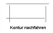 • Kontur nachfahren - Diese Auswahloption ermöglicht das Nachfahren bzw. Neuzeichnen einer Umgrenzung. Dabei wird eine Polylinie gezeichnet, die in die Objektwahl und somit als eigentliche Flächenbegrenzung aufgenommen wird. Beim Nachfahren stehen alle Optionen des Polylinienbefehls zur Verfügung. Verwenden Sie diese Auswahloption also dann, wenn weder geschlossene Polylinien, noch geschlossene Konturen vorliegen und Sie entweder nicht geschlossene Konturen nachfahren oder die Kontur neu entwerfen.