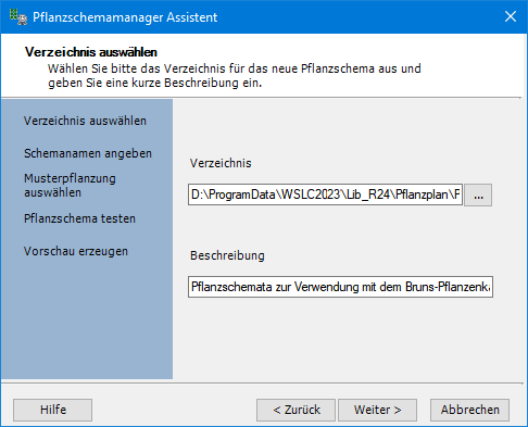 Im zweiten Schritt geben Sie bitte den Namen des Pflanzschemas an sowie eine kurze, prägnante Beschreibung. Die Beschreibung kann auch nachträglich jederzeit im Eigenschaftenfenster des Managers erstellt oder editiert werden. |