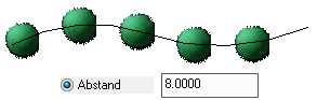 Der Abstand gibt den Abstand der Pflanzen entlang der Polylinie an. Das erste Symbol wird stets erst nach dem ersten Abstandsintervall eingefügt. |
