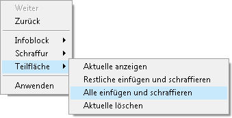 Die Flächenpflanzung hält für diesen Fall den Schalter alle vor, welcher sowohl für die Infoblöcke als auch für die Schraffuren gilt. Ist dieser Schalter aktiviert, können die Infoblöcke und Schraffuren aller Teilflächen automatisch eingefügt werden.