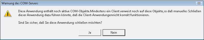 Falls Sie diese Warnung nicht beachten, und die Datenbank trotzdem separat beenden, kann es in der Folge zu Speicherverletzungen in AutoCAD kommen, welche zumeist ein Verlassen von AutoCAD und damit auch WS LANDCAD erzwingen.