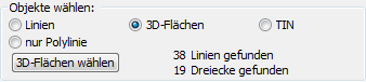 Die Auswahl ist ansonsten mit der von Linien identisch, nur dass in der Objektwahl eben nur 3D-Flächen herausgefiltert werden.