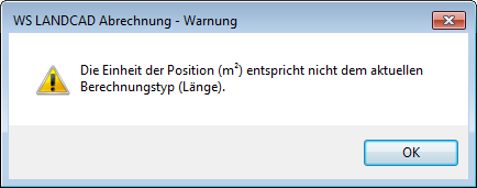 Anmerkung: Bitte prüfen Sie vor der Objektwahl, ob die durch die Position festgelegte Berechnungseinheit zum eingestellten Berechnungstyp (z. B. Fläche)  passt. Ist dies nicht der Fall, wird die Objektwahl blockiert und es erscheint ein entsprechender Hinweis.