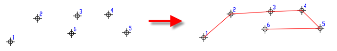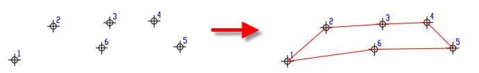 Diese Objektwahl ist dann anzuwenden, wenn Messpunkte aufgenommen und in die Zeichnung importiert wurden. Die Punkte müssen mit aufsteigender Punktnummerierung aufgenommen worden sein, damit die richtige Linienverbindung gefunden wird. Zur Kontrolle wird daher eine temporäre Umgrenzung eingeblendet.