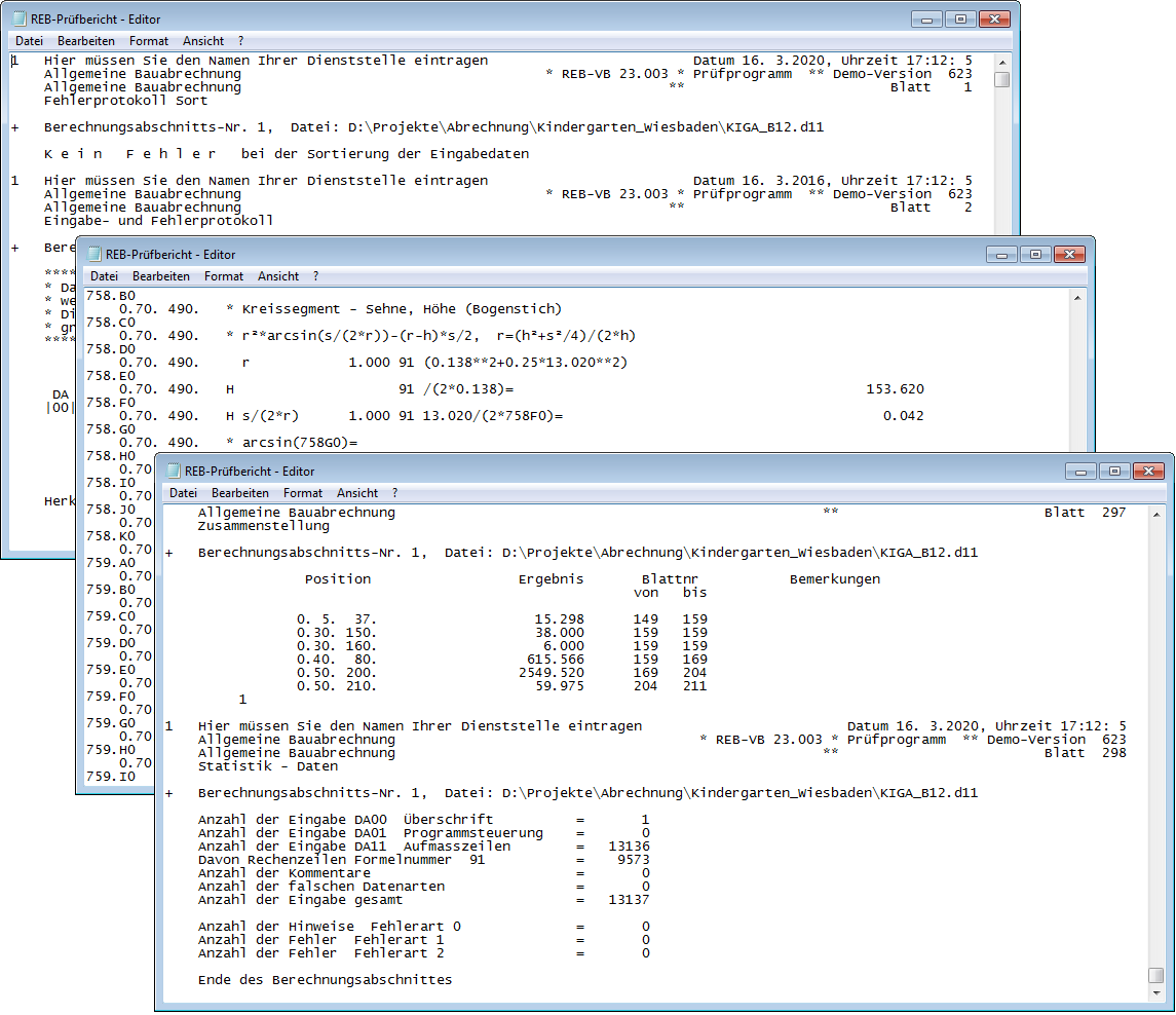 Mit REB für Windows steht ein Werkzeug zur Durchführung von Prüfberechnungen gemäß der Sammlung der REB zur Verfügung. Das Programmsystem führt die Nachrechnung im Sinne der Rechnungslegungsbestimmungen durch und nimmt umfangreiche fachliche Prüfungen vor. Die ausführlichen Berechnungsprotokolle sind ein wichtiges Hilfsmittel des Prüfers bei der Durchführung der fachlichen Prüfung.