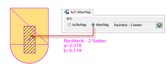 Unbearbeitete Inseln können durch Inselpolygone entstehen, die in einen Kreisbogenabschnitt hineinragen, welcher selbst als Auf-/Abschlag zu einer Hauptfläche definiert ist. Normalerweise bietet die Abrechnung die Möglichkeit, diese Überlappungen durch das automatische Hinzufügen weitere Punkte zu eliminieren. Ist dies jedoch nicht erwünscht, muss eine Überlappung manuell als Abschlag definiert werden, da ansonsten eine falsch resultierende Fläche entsteht.