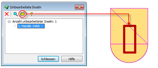 Eine selektierte Insel kann mit Hilfe der zentralen Hervorhebungsroutine ausgeleuchtet und bei Bedarf mit einem Auswahlpolygon (zur Erinnerung) versehen werden.